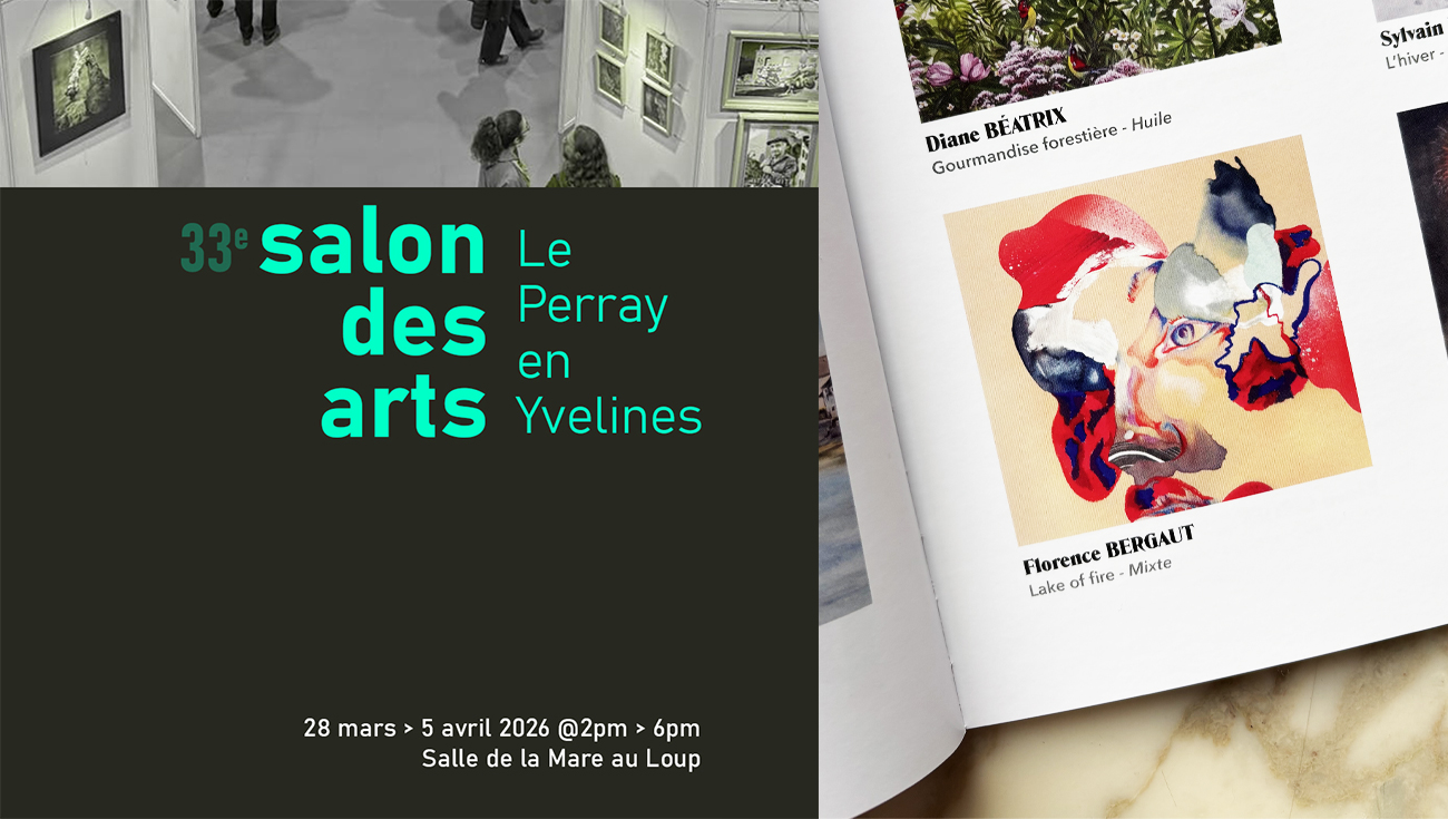 Je suis très heureuse de vous annoncer que je présente une de ces peintures, ainsi que trois autres, au 33ème Salon des arts au Perray-en-Yvelines, Salle de la Mare au Loup, du 28 mars au 5 avril 2026, tous les jours de 14h à 18h.